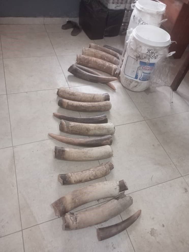 « Dans le cadre de la lutte contre le braconnage et la criminalité faunique, les services des douanes d’Ambam dans le Département de la Vallée du Ntem ont procédé respectivement à la saisie de vingt-six (26) morceaux de pointes d’ivoire et d’une (01) peau de panthère dans les localités de BIYII-EBA et de THO’O les 18 et 28 août 2024.